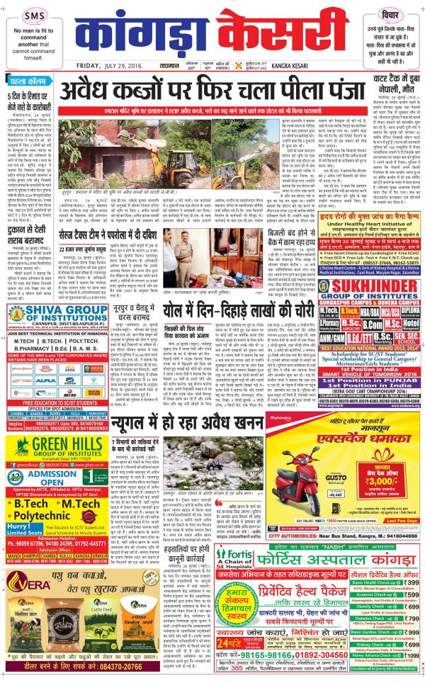Kangra Kesari 01 01 70 Newspaper In Hindi By Punjab Kesari Read On Mobile Tablets
